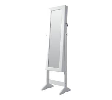 Solución ideal 2 en 1 que combina un espejo de cuerpo entero con un discreto y seguro armario para tus joyas y accesorios. Su elegante estructura de madera MDF lacada mate ofrece un acabado de alta calidad.